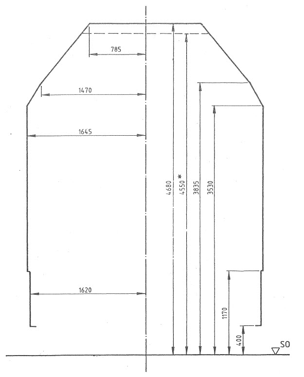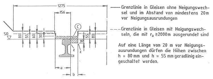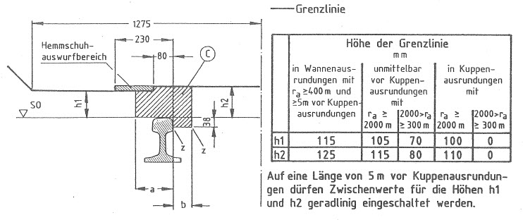Bezugslinie für die unteren Teile der Fahrzeuge, die nicht über Gleise fahren dürfen, deren Einrichtungen nach der Grenzlinie für feste Anlagen gemäß Anlage 1 Bild 2 Buchstabe b bemessen sind (Ablaufberge, Rangiereinrichtungen).