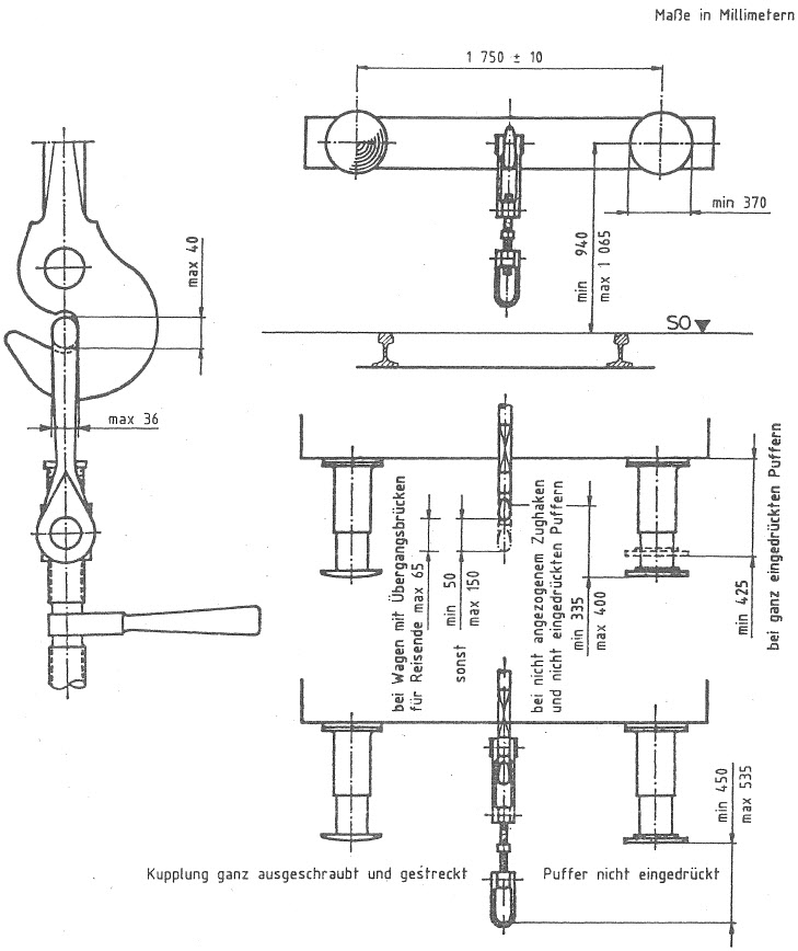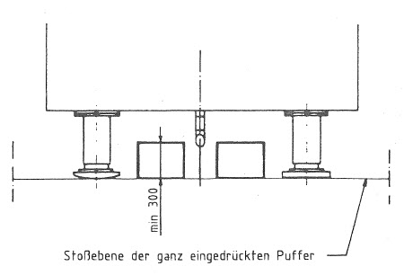 Der in Blickrichtung auf die Stirnseite des Fahrzeugs linke Pufferteller muß gewölbt sein. Sind beide Pufferteller gewölbt, so darf der Wölbungsradius nicht kleiner als 1 500 mm sein.