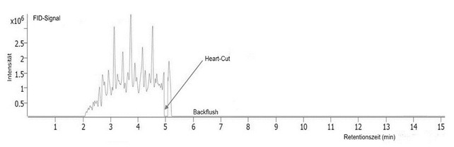 Bei der Messung von Proben mit ISTD dominiert das Lösemittelsignal von Xylol das FID-Chromatogramm.