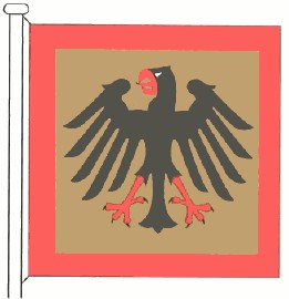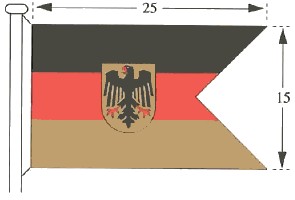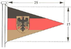 die Bundesdienstflagge in Standerform in der Größe 15 x 25 cm (Muster VI),