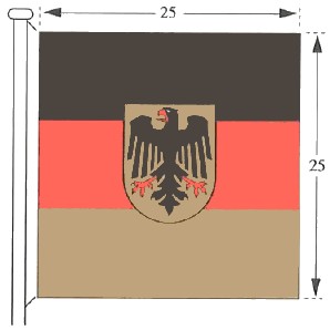 die Bundesdienstflagge in der Größe 25 x 25 cm (Muster II),