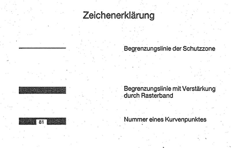 Der Lärmschutzbereich mit seinen zwei Schutzzonen wird nach Anlage 1 bestimmt durch die interpolierten Verbindungslinien zwischen den Kurvenpunkten, soweit diese Linien außerhalb des Flugplatzgeländes verlaufen.