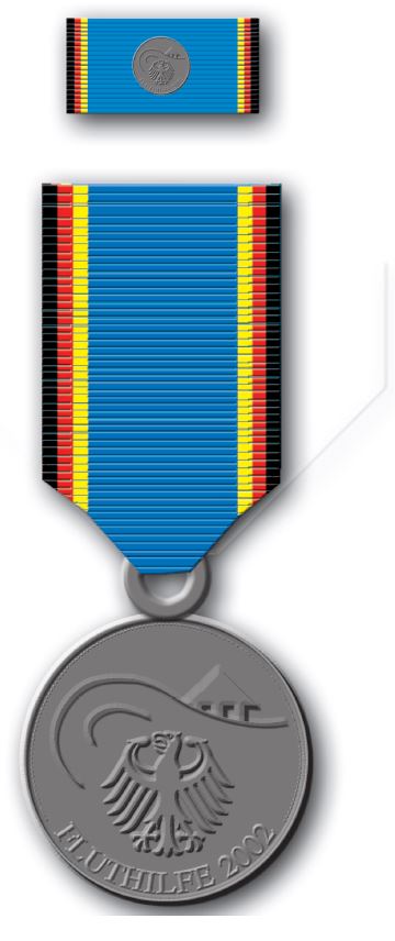 Als Dank und in Anerkennung für besonders aufopferungsvolle Hilfe bei der Abwehr von Gefahren und der Beseitigung von Schäden anlässlich der Flutkatastrophe im August 2002 in der Bundesrepublik Deutschland stiften der Bundesminister des Innern und der Bundesminister der Verteidigung für haupt- und ehrenamtliche Einsatzkräfte des Technischen Hilfswerkes, Angehörige des Bundesgrenzschutzes und der Bundeswehr sowie für Dritte aufgrund ihrer besonderen Verdienste in der Zusammenarbeit mit dem Technischen Hilfswerk, dem Bundesgrenzschutz und der Bundeswehr gemeinsam die