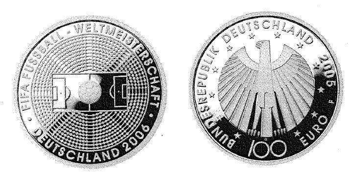 Gemäß den §§ 2, 4 und 5 des Münzgesetzes vom 16. Dezember 1999 (BGBl. I S. 2402) hat die Bundesregierung beschlossen, zum Thema "FIFA Fußball-Weltmeisterschaft in Deutschland 2006" eine Gedenkmünze zu 100 Euro aus Gold prägen zu lassen.