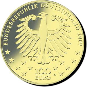 Die Wertseite zeigt einen Adler, den Schriftzug „BUNDESREPUBLIK DEUTSCHLAND“, die zwölf Europasterne, die Wertziffer mit der Euro-Bezeichnung sowie die Jahreszahl „2009“ und – je nach Münzstätte – das Münzzeichen „A“, „D“, „F“, „G“ oder „J“.*