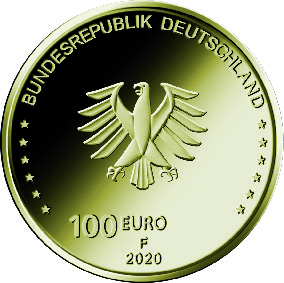 Die Wertseite zeigt einen Adler, den Schriftzug „BUNDESREPUBLIK DEUTSCHLAND“, die zwölf Europasterne, die Wertziffer mit der Euro-Bezeichnung sowie die Jahreszahl „2020“ und – je nach Münzstätte – das Münzzeichen „A“, „D“, „F“, „G“ oder „J“.