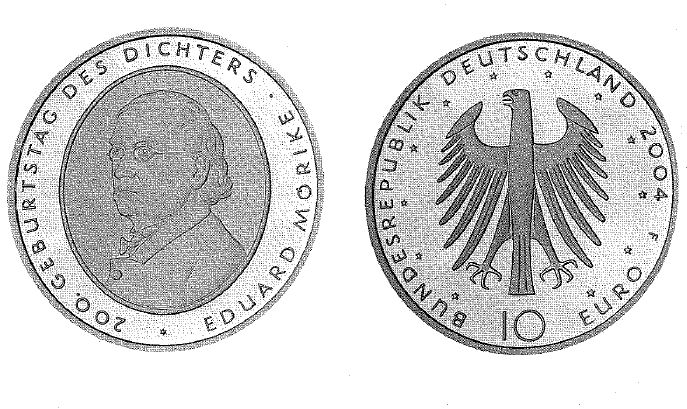 Gemäß den §§ 2, 4 und 5 des Münzgesetzes vom 16. Dezember 1999 (BGBl. I S. 2402) hat die Bundesregierung beschlossen, anlässlich des 200. Geburtstages des Dichters Eduard Mörike eine deutsche Euro-Gedenkmünze im Nennwert von 10 Euro prägen zu lassen.