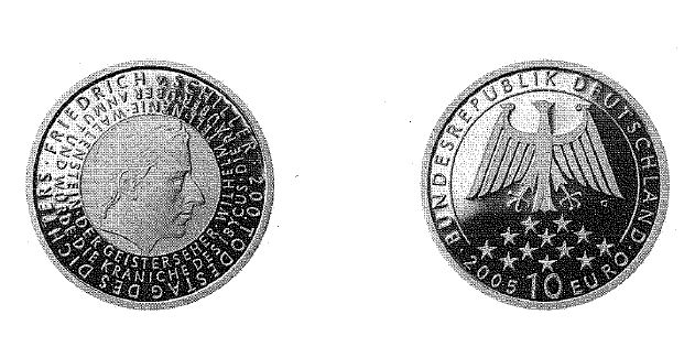 Gemäß den §§ 2, 4 und 5 des Münzgesetzes vom 16. Dezember 1999 (BGBl. I S. 2402) hat die Bundesregierung beschlossen, eine deutsche Euro-Gedenkmünze "200. Todestag des Dichters Friedrich von Schiller" im Nennwert von 10 Euro prägen zu lassen.