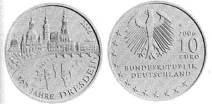 Gemäß den §§ 2, 4 und 5 des Münzgesetzes vom 16. Dezember 1999 (BGBl. I S. 2402) hat die Bundesregierung beschlossen, zur Würdigung von 800 Jahre Dresden eine deutsche Euro-Gedenkmünze im Nennwert von 10 Euro prägen zu lassen.