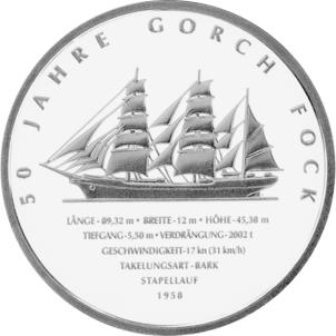 Gemäß den §§ 2, 4 und 5 des Münzgesetzes vom 16. Dezember 1999 (BGBl. I S. 2402) hat die Bundesregierung beschlossen, aus Anlass des 50. Jahrestages der Inbetriebnahme des Segelschulschiffes „Gorch Fock“ eine deutsche Euro-Gedenkmünze im Nennwert von 10 Euro prägen zu lassen. Die Auflage der Münze beträgt 1.760.000 Stück, darunter maximal 260 000 Stück in Spiegelglanzausführung. Die Prägung erfolgt durch die Hamburgische Münze.