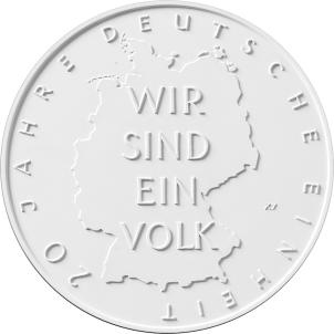 Die Bildseite der Münze besticht durch grafische und inhaltliche Klarheit. Die zentrale Aussage „Wir sind ein Volk“ steht als Wille des deutschen Volkes zur Einheit im Mittelpunkt.