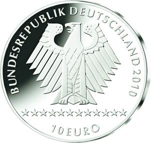 Die Wertseite zeigt einen Adler, den Schriftzug „BUNDESREPUBLIK DEUTSCHLAND“, die Wertziffer und Wertbezeichnung sowie die Jahreszahl 2010 und die zwölf Europasterne.