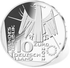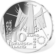Die Wertseite zeigt einen Adler, den Schriftzug „BUNDESREPUBLIK DEUTSCHLAND“, Wertziffer und Wertbezeichnung, das Prägezeichen „D“ des Bayerischen Hauptmünzamtes, die Jahreszahl 2012 sowie die zwölf Europasterne. Auf der Wertseite der Münze in Spiegelglanzqualität ist zusätzlich die Angabe „SILBER 625“ aufgeprägt.
