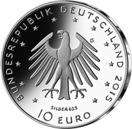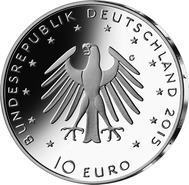 Die Wertseite zeigt einen Adler, den Schriftzug „BUNDESREPUBLIK DEUTSCHLAND“, Wertziffer und Wertbezeichnung, das Prägezeichen „G“ der Staatlichen Münzen Baden-Württemberg, Prägestätte Karlsruhe, die Jahreszahl 2015 sowie die zwölf Europasterne. Auf der Wertseite der Münze in Spiegelglanzqualität ist zusätzlich die Angabe „SILBER 625“ aufgeprägt.