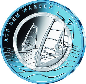 Gemäß den §§ 2, 4 und 5 des Münzgesetzes vom 16. Dezember 1999 (BGBl. I S. 2402) hat die Bundesregierung beschlossen, eine 10-Euro-Sammlermünze „Auf dem Wasser“ mit einem farblosen Kunststoffring prägen zu lassen. Diese Münze ist die dritte und zugleich letzte Ausgabe der im Jahr 2019 begonnenen Serie „Luft bewegt“ (2019-2021, eine Ausgabe pro Jahr).