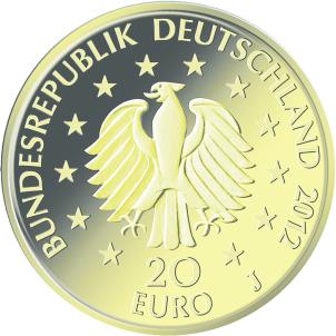 Die Wertseite zeigt einen Adler, den Schriftzug „BUNDESREPUBLIK DEUTSCHLAND“, die zwölf Europasterne, die Wertziffer mit der Euro-Bezeichnung sowie die Jahreszahl „2012“ und – je nach Münzstätte – das Münzzeichen „A“, „D“, „F“, „G“ oder „J“.