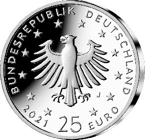 Die Wertseite zeigt einen Adler, den Schriftzug „BUNDESREPUBLIK DEUTSCHLAND“, Wertziffer und Wertbezeichnung, das Prägezeichen „J“ der Hamburgischen Münze, die Jahreszahl 2021 sowie die zwölf Europasterne.