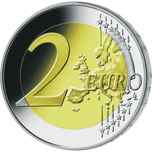 Die Wertseite der Münze, die Randschrift (Schriftzug „EINIGKEIT UND RECHT UND FREIHEIT“ sowie eine stilisierte Darstellung des Bundesadlers) und die technischen Parameter entsprechen der 2-Euro-Umlaufmünze.