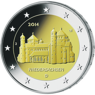 Die nationale Seite zeigt auf dem inneren Kern die Michaeliskirche in Hildesheim. Die Länderbezeichnung „NIEDERSACHSEN“ verknüpft das abgebildete Bauwerk mit dem Bundesland. Auf dem inneren Kern befinden sich ferner das Ausgabejahr 2014, die Kennzeichnung „D“ für das Ausgabeland Bundesrepublik Deutschland, das Münzzeichen der jeweiligen Prägestätte („A“, „D“, „F“, „G“ oder „J“) sowie die Initialen des Künstlers. Der äußere Ring der nationalen Seite zeigt die zwölf Europasterne.