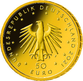 Die Wertseite zeigt einen Adler, den Schriftzug „BUNDESREPUBLIK DEUTSCHLAND“, Wertziffer und Wertbezeichnung, die Jahreszahl „2021“, die zwölf Europasterne sowie – je nach Prägestätte – das Münzzeichen „A“ (Berlin), „D“ (München), „F“ (Stuttgart), „G“ (Karlsruhe) oder „J“ (Hamburg).