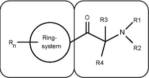 Dies schließt chemische Verbindungen mit einer Cathinon-Grundstruktur (2-Amino-1-phenyl-1-propanon) ein: