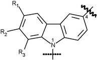 Carbazol-1,4-diyl (Bindungsort für die Brücke in Position 4, Bindungsort für die Seitenkette in Position 1)