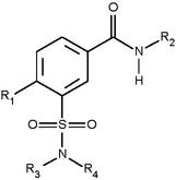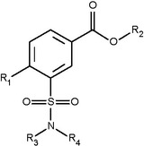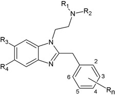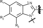 Eine von Benzimidazol abgeleitete Verbindung ist jede chemische Verbindung, die von der nachfolgend abgebildeten Grundstruktur abgeleitet werden kann, eine maximale Molekülmasse von 500 u hat und mit den nachfolgend beschriebenen Substituenten besetzt sein kann:
