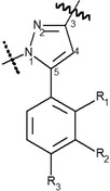 Pyrazol-1,3-diyl (Bindungsort für die Brücke in Position 3, Bindungsort für die Seitenkette in Position 1)