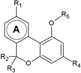 Das Cyclohexylringsystem kann an den Positionen zwei bis sechs mit folgenden Atomen oder Atomgruppen substituiert sein: Wasserstoff, Alkyl- (bis C6), Alkoxy- (bis C6), Hydroxy-, Phenylalkylgruppen (in der Alkylkette C1 bis C4) und Oxo-Gruppen (=O, doppelt gebundenes Sauerstoffatom am Ring).