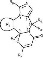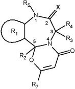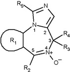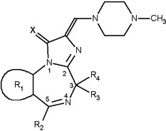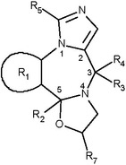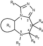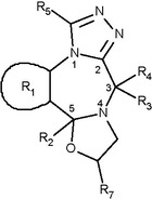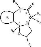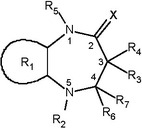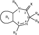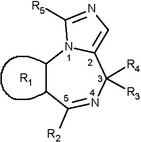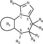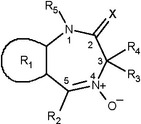 Bei den 1,5-Benzodiazepinen kann statt R2 und R7 auch eine mit R6 substituierte Doppelbindung zum 5-Stickstoff-Atom vorliegen.