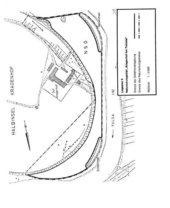 die Wasserfläche zwischen der Ralleninsel, der geraden Linie von ihrem unterstromigen Ende zur Enteninsel und einem anschließenden Bogen zum rechten Fuldaufer bei Fulda-km 92,47 und dem rechten Fuldaufer von Fulda-km 91,54 bis Fulda-km 92,47 (Lageplan 9).