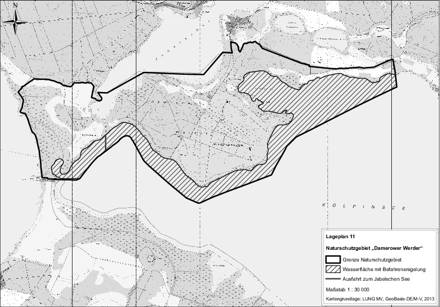 im Kölpinsee die Wasserfläche des Naturschutzgebietes „Damerower Werder“ nach Maßgabe des Lageplans 11;