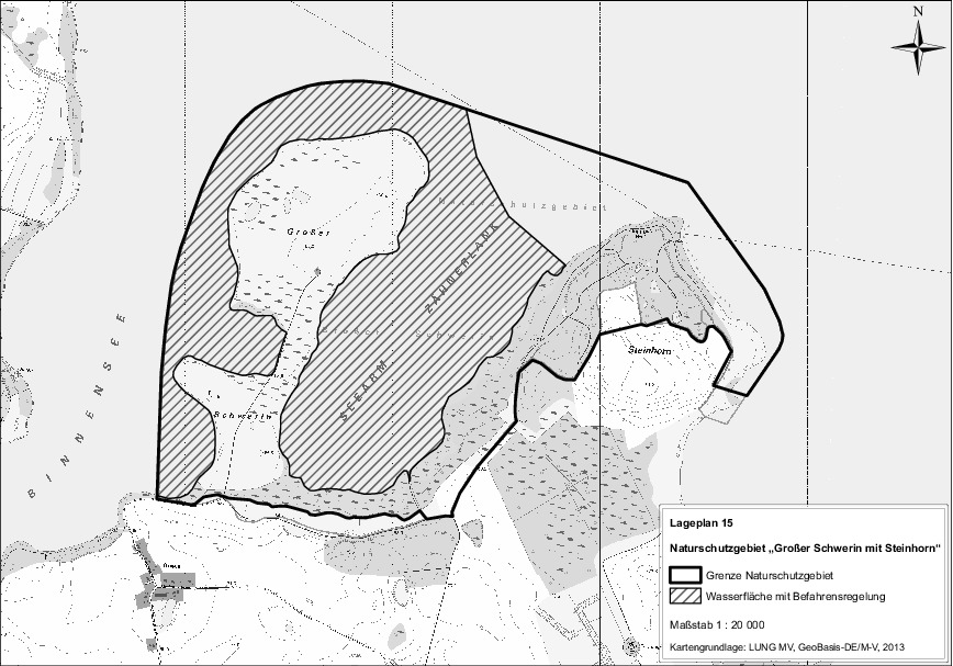 in der Müritz die Wasserfläche im Westteil des Naturschutzgebietes „Großer Schwerin mit Steinhorn“ und den Bereich des Seearms Zähnerlank nach Maßgabe des Lageplans 15;