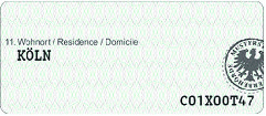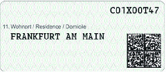 Datenfelder des Aufklebers für Änderungen des Wohnortes nach elektronischer Anmeldung
