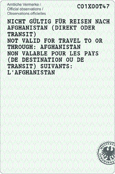 (2) Ein nach Absatz 1 zugelassener Passersatz gilt für alle Länder, sofern sich aus dem Passersatz, aus Rechtsvorschriften oder aus zwischenstaatlichen Vereinbarungen keine Beschränkung des Geltungsbereichs ergibt.