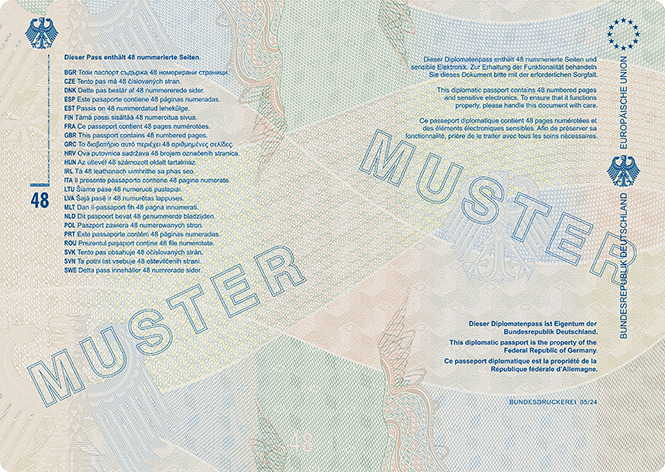 (2) Der Diplomatenpass der Bundesrepublik Deutschland ist nach dem in der Anlage 5 abgedruckten Muster auszustellen.