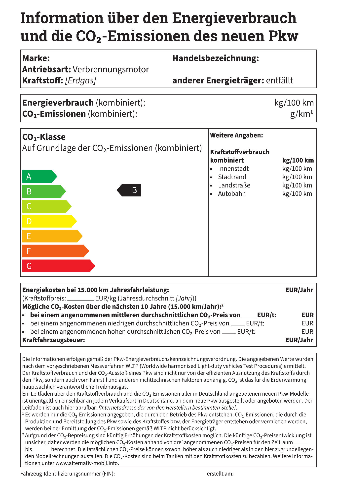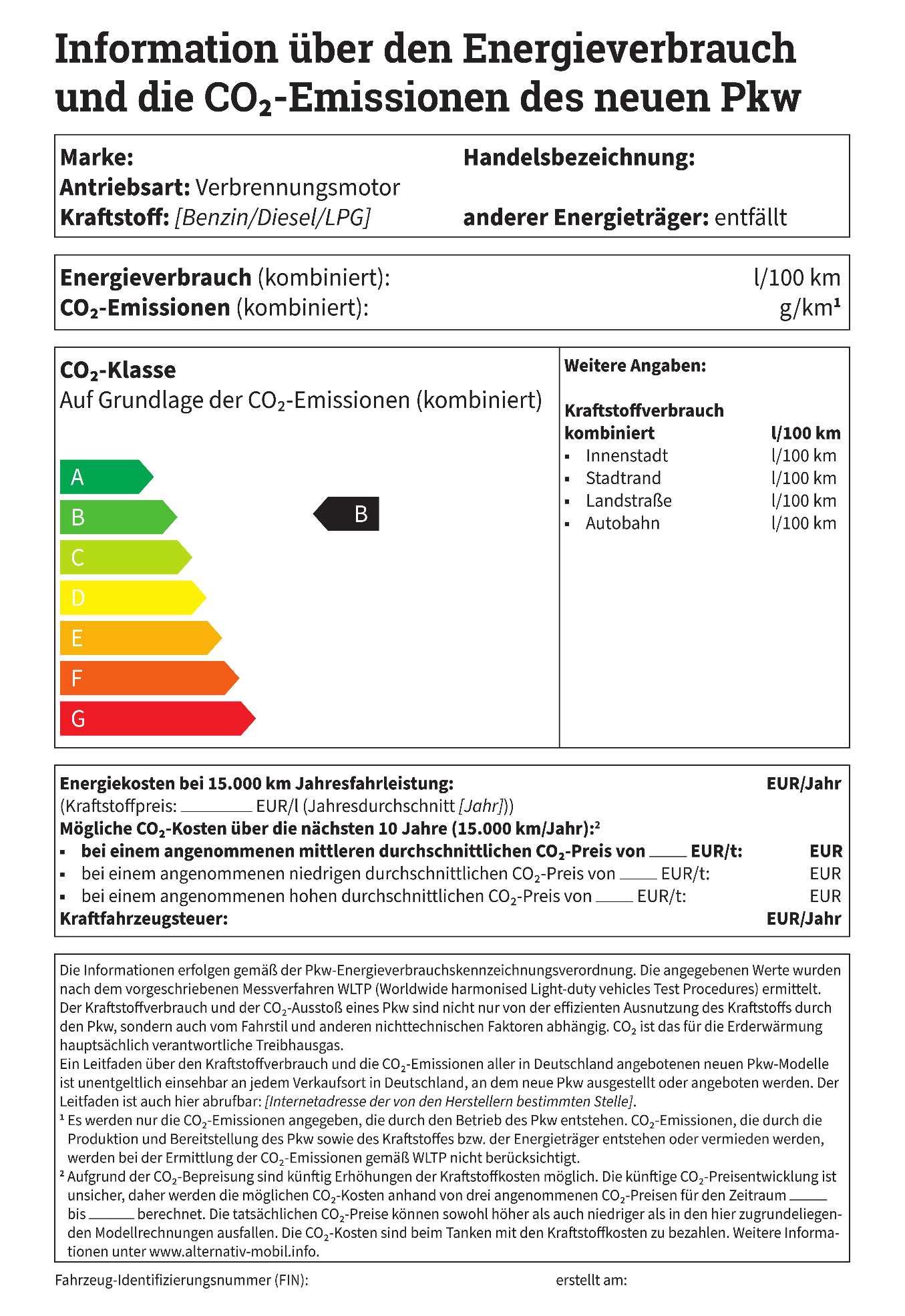Muster für den Hinweis über den Energieverbrauch und die CO2-Emissionen