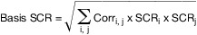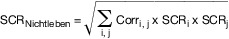 wobei SCRi das Untermodul i und SCRj das Untermodul j bezeichnet; „i, j“ bedeutet, dass in der Summe alle möglichen Kombinationen von i und j erfasst sein sollten. Bei der Berechnung treten an die Stelle von SCRi und SCRj:
